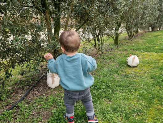 Mit uns gemeinsam am Hof leben unsere Kaninchen Flöckchen, Pünktchen.